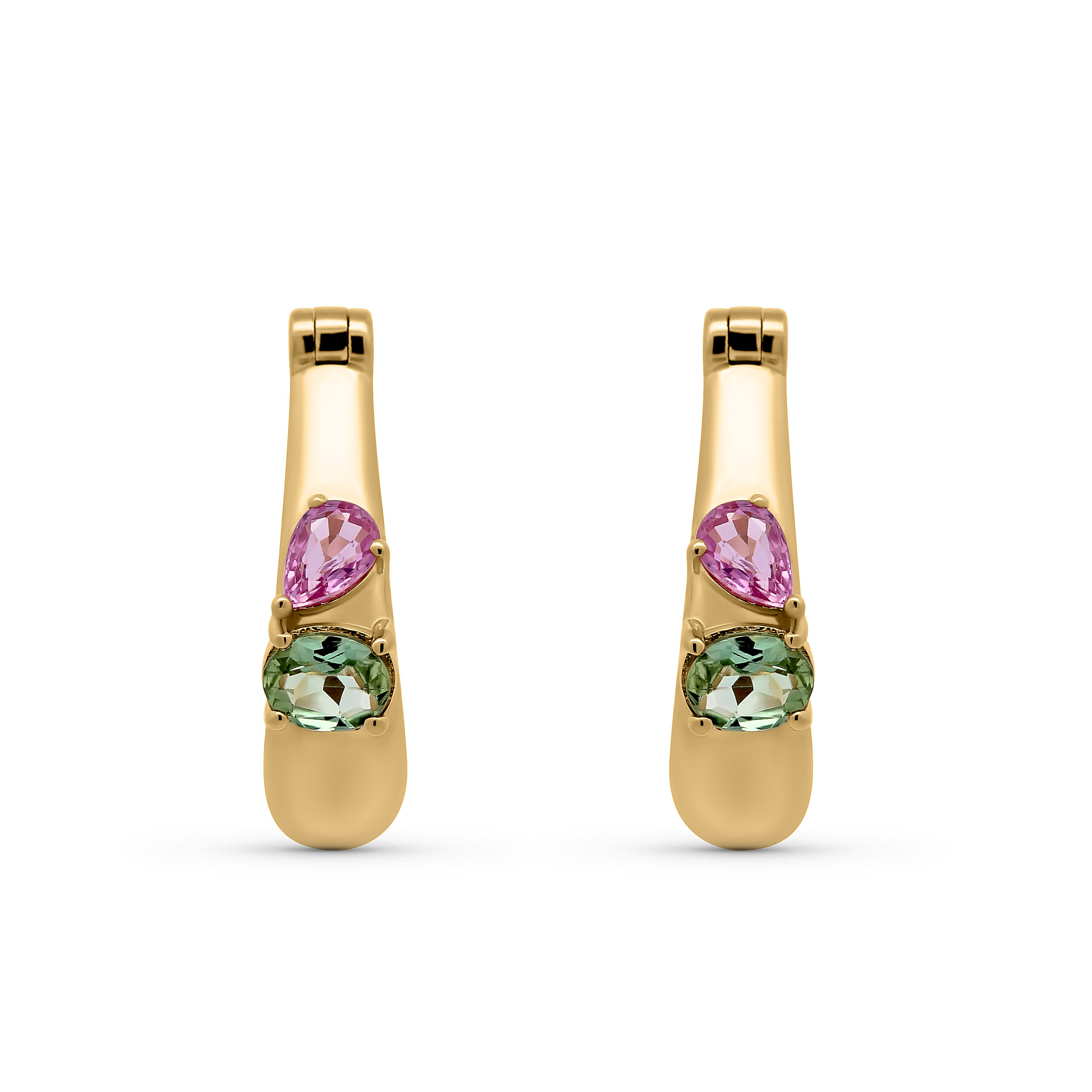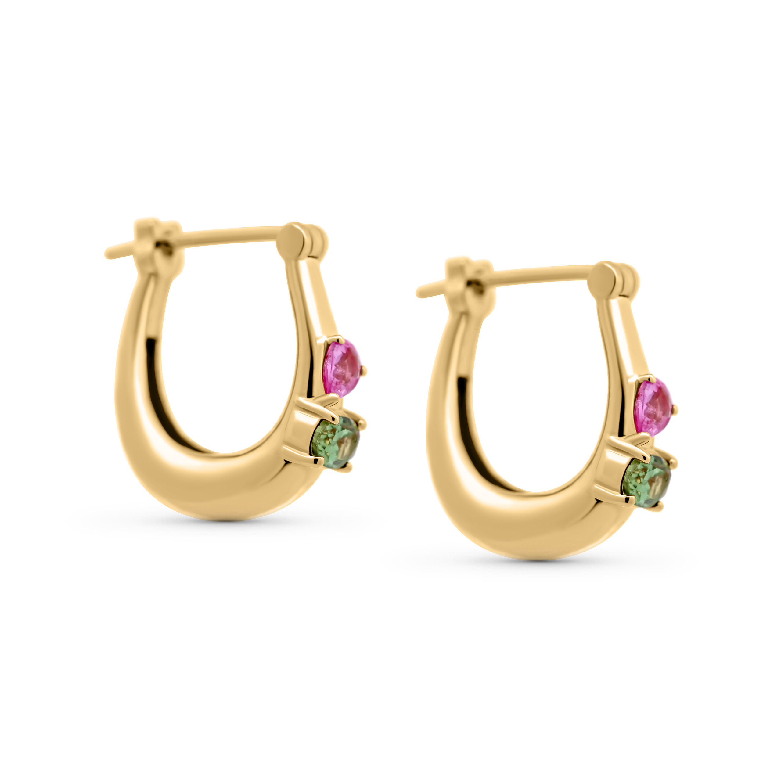 Solid 14k Dualis Sapphire & Peridot Hoops
