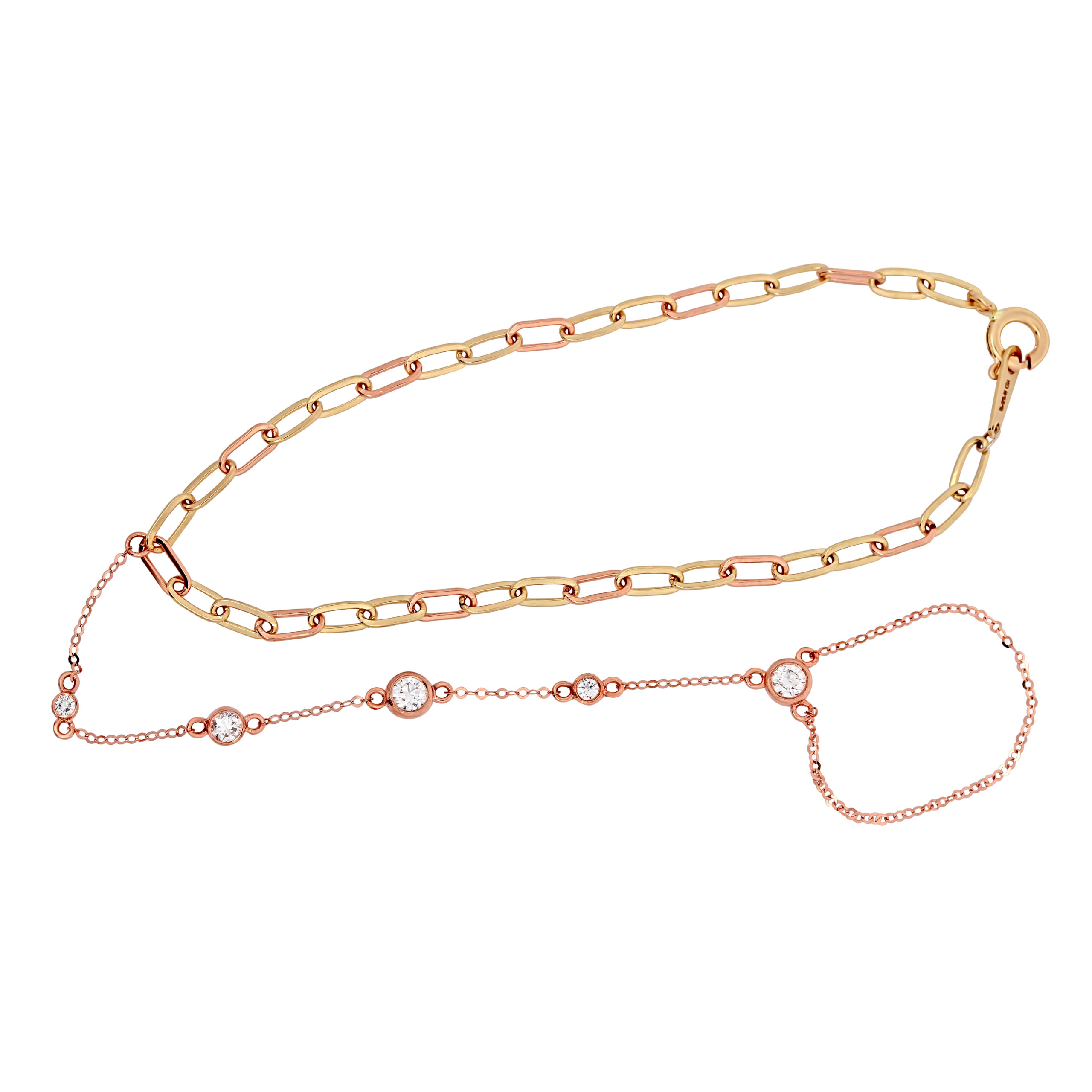 Solid 14k Diamond Paperclip Handchain