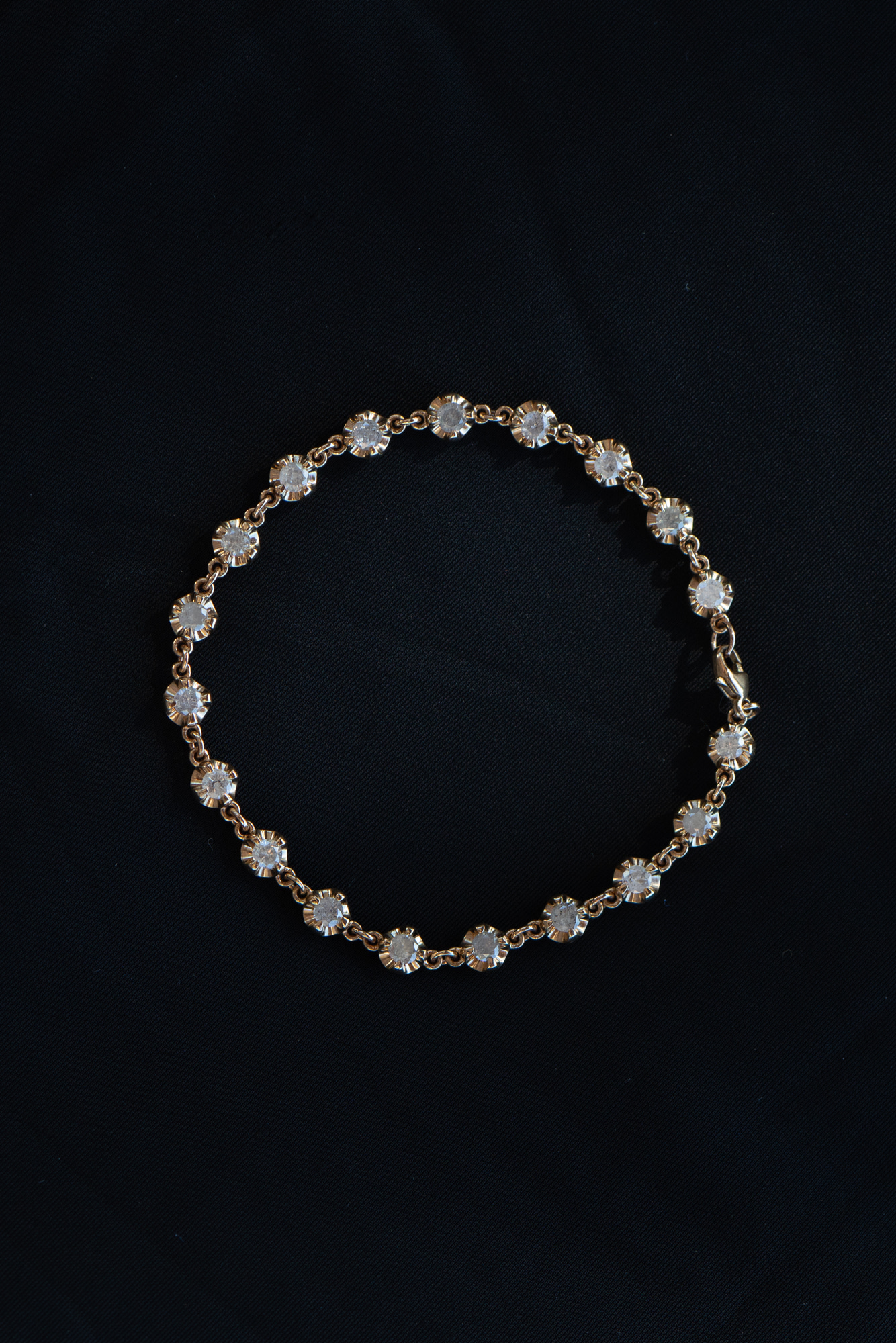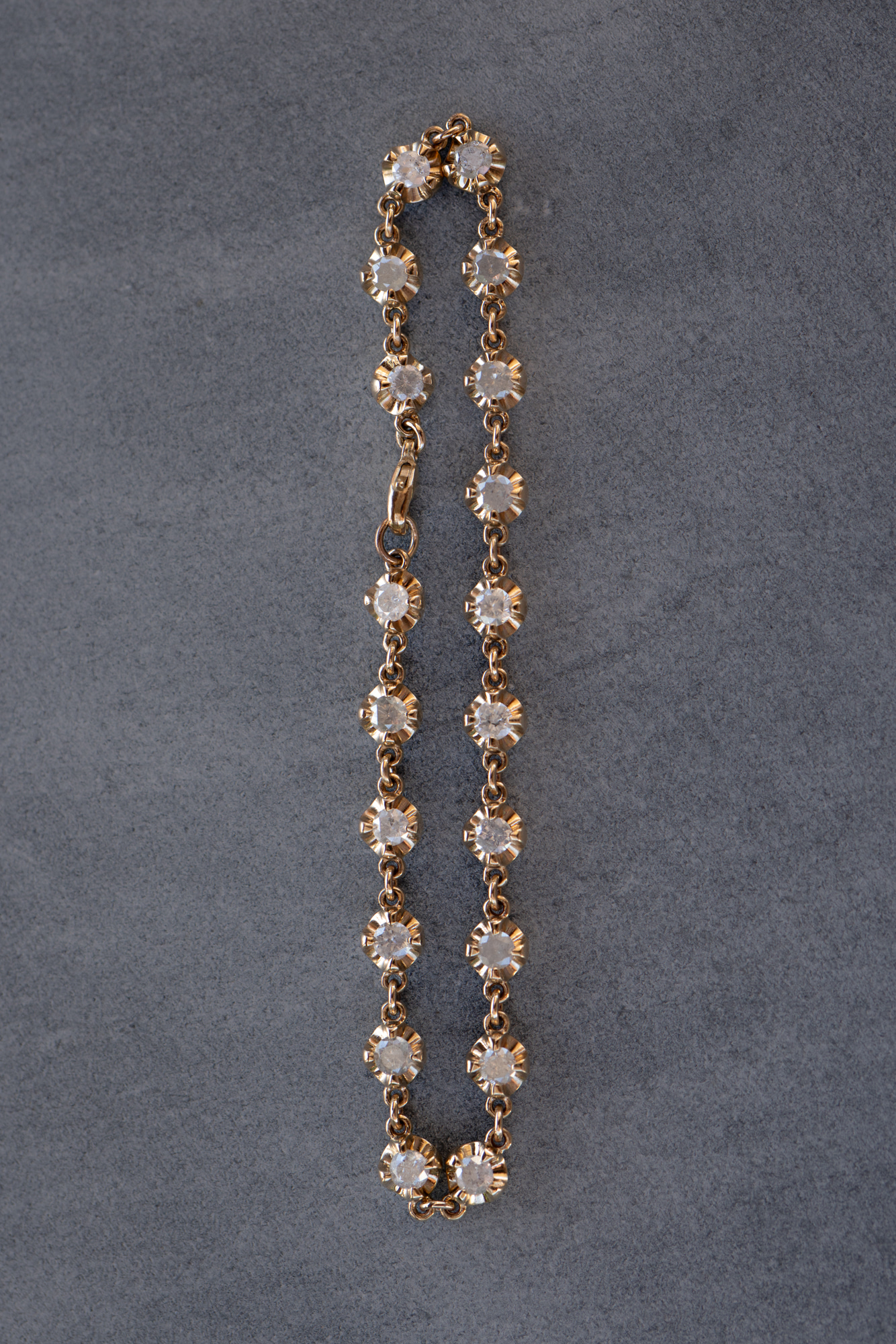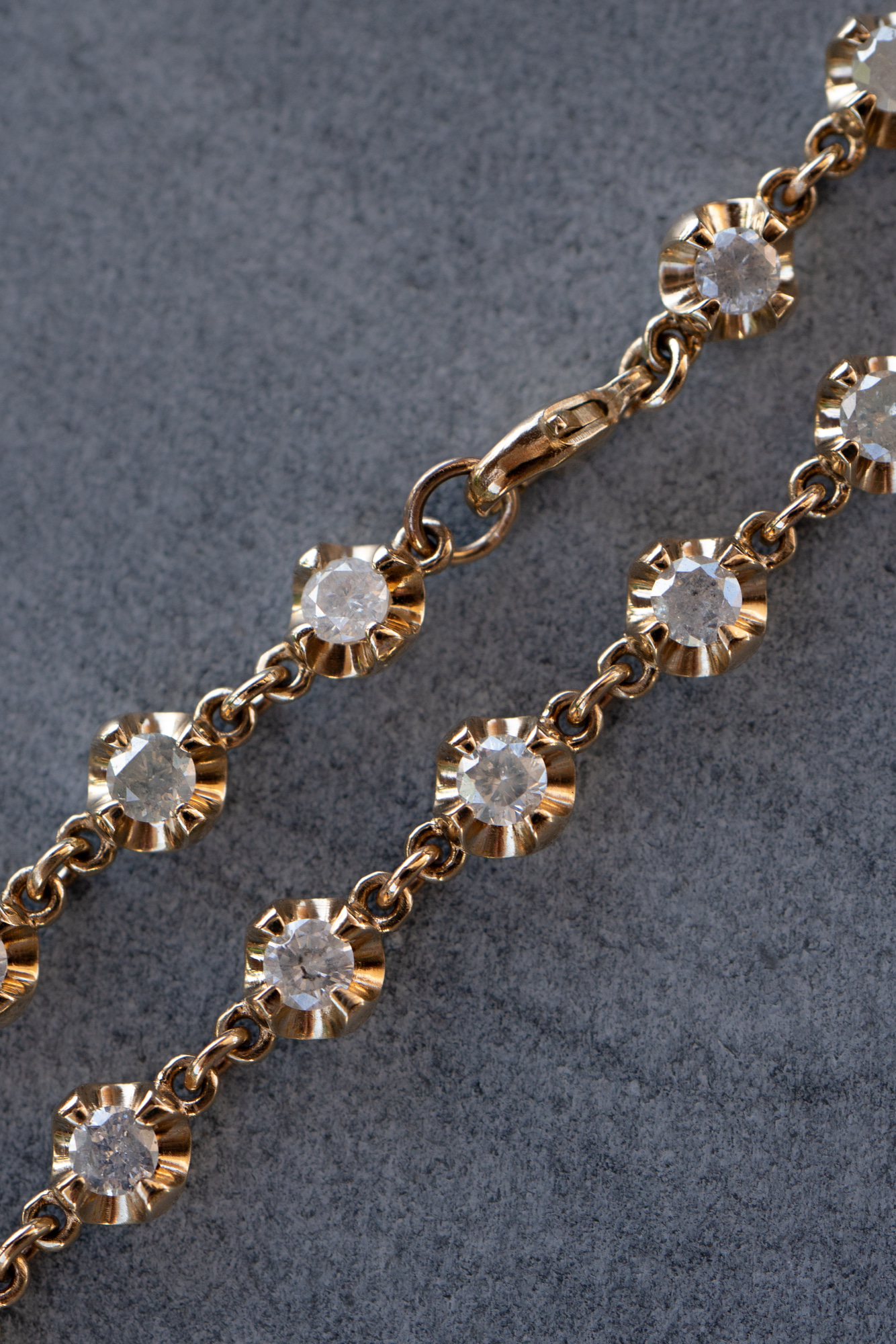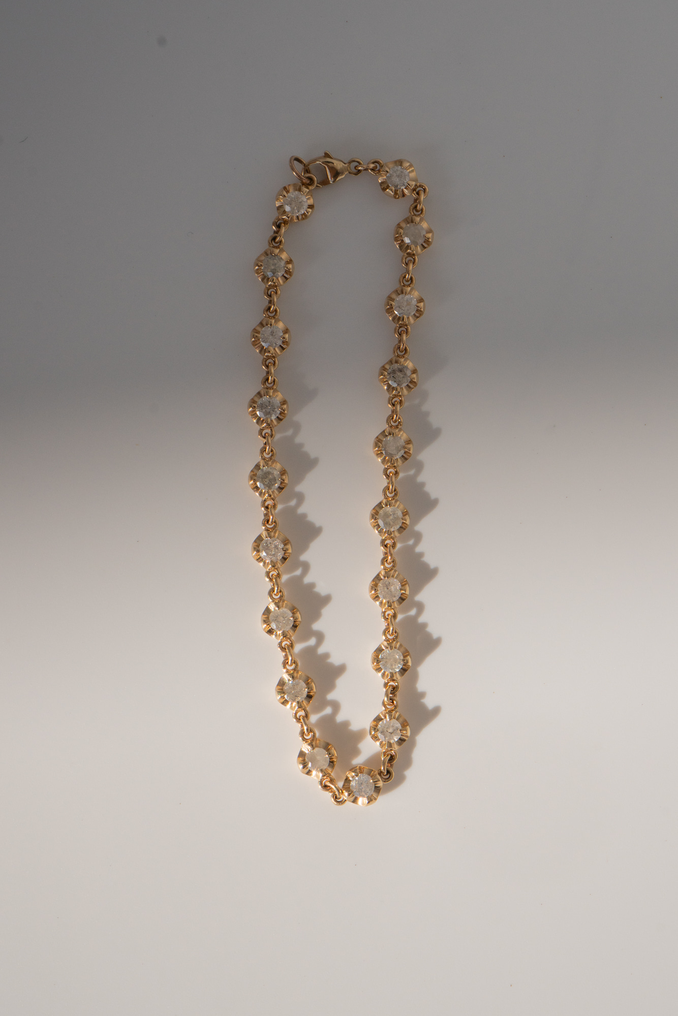 This bracelet can also be made in other lengths, or using lab diamonds or any other gemstones. Email [email protected] to receive a quote. Overall weight will vary depending on length of chain.
